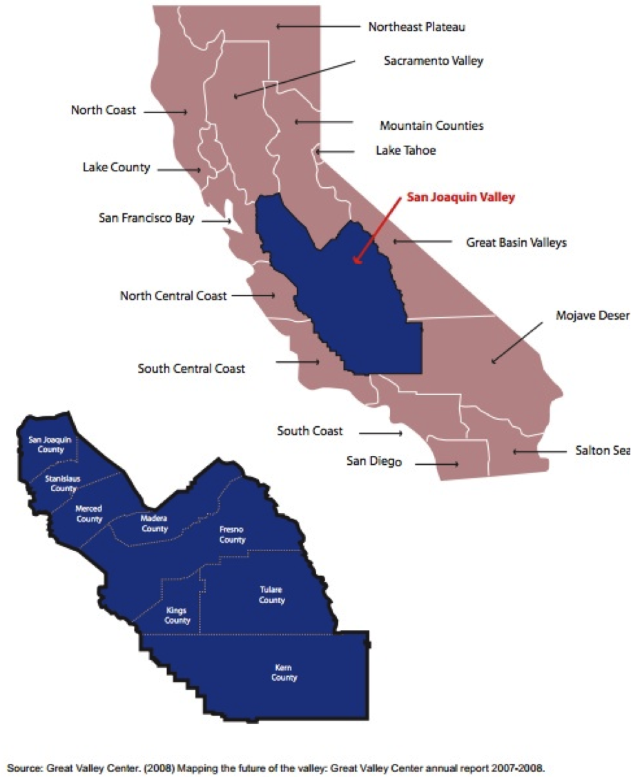 The San Joaquin Valley, also known as the Central Valley of California, is one of the most fertile agricultural regions in the world – growing 25% of the food Americans eat on 1% of America’s farmland – yet it is one of the poorest and unhealthiest places in the country.