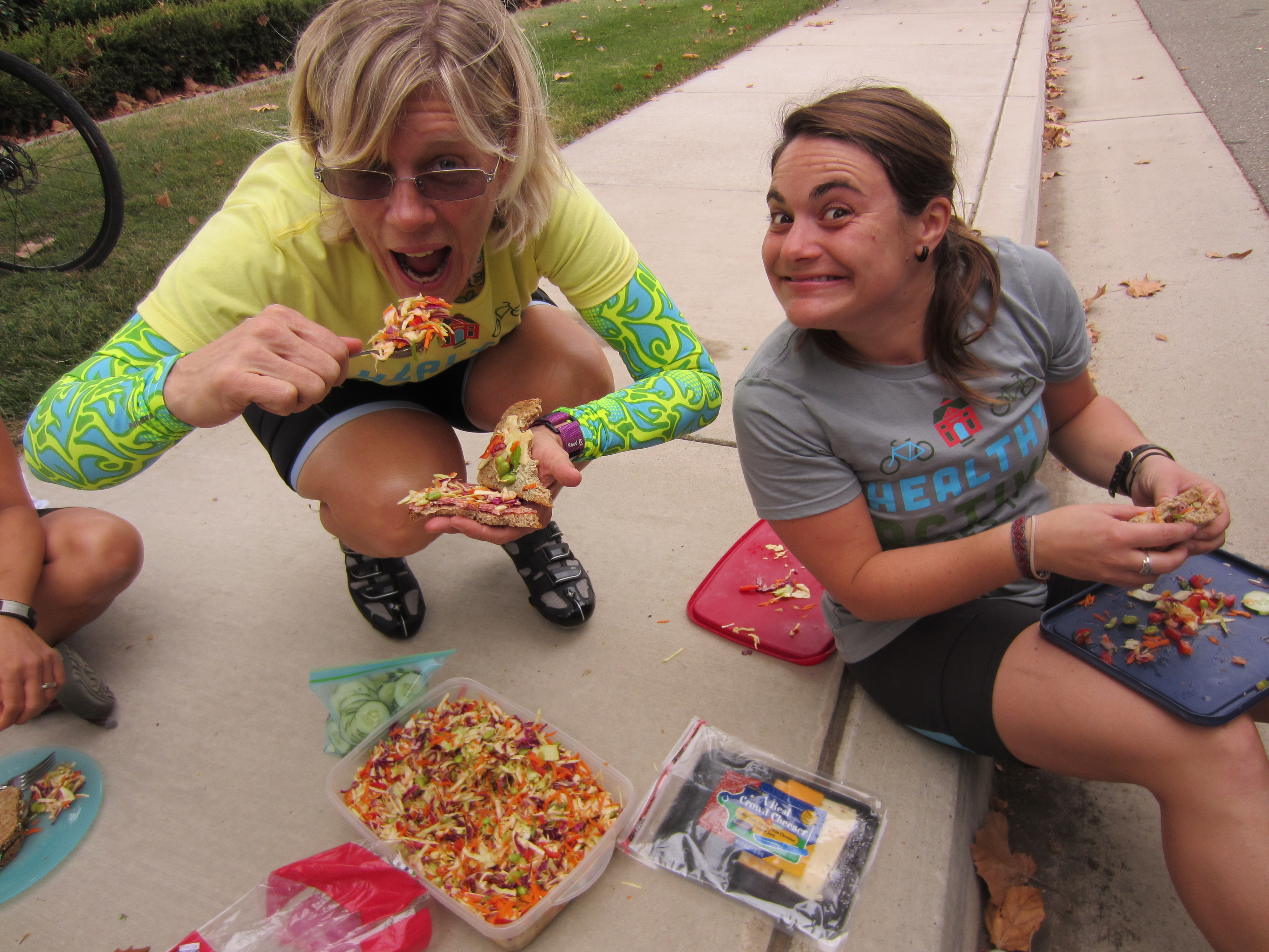 - to Steph, our captain of nourishment, who pulled together a series of delicious super food meals on a dime, wherever and whenever we needed it – on a sidewalk, in a parking lot, at the end of a long day of riding or in the pre-dawn before an early start. And she never failed to provide a little comic relief when we needed it 😉